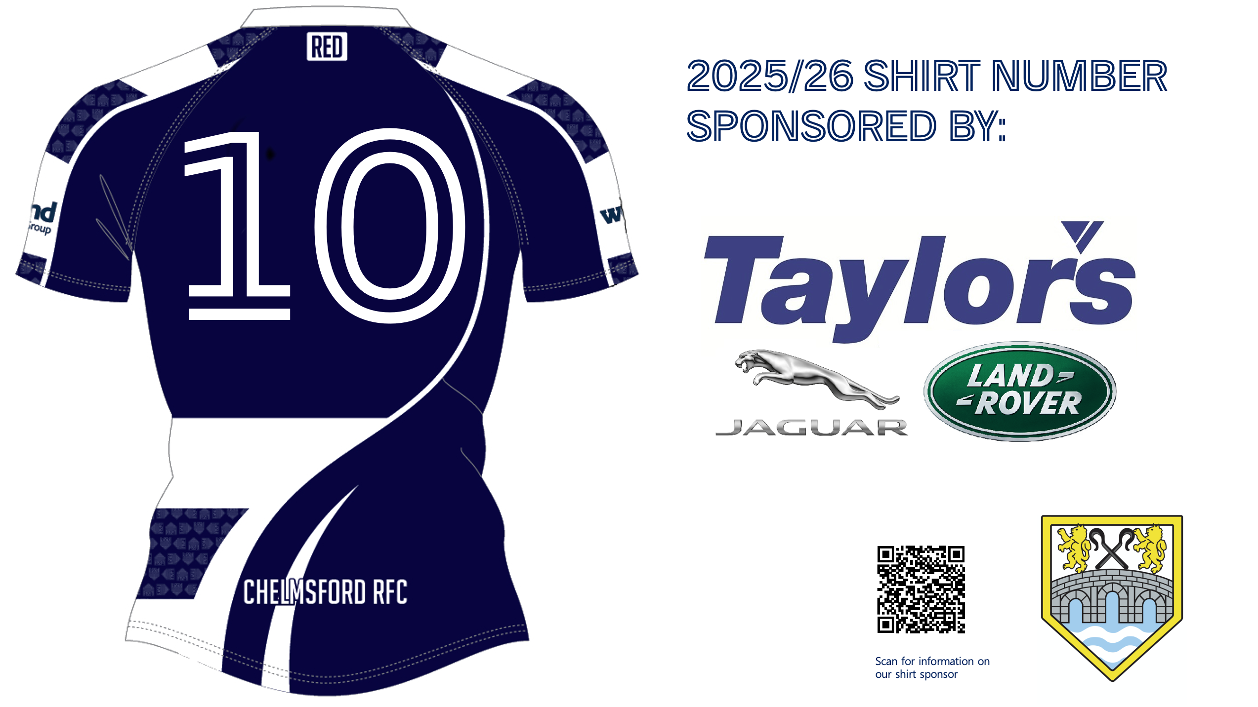 Chelmsford RFC are proud to welcome Taylor's Jaguar Land Rover as the new sponsor of our No10 shirts.