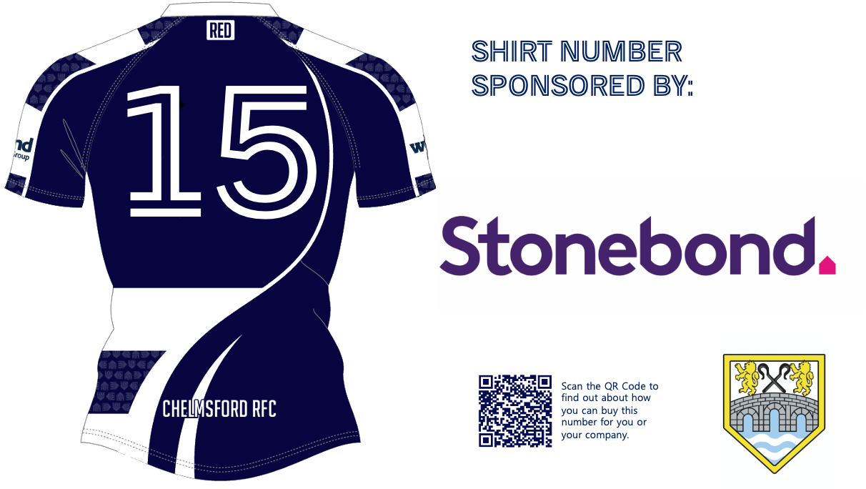 Stonebond Properties are pleased to sponsor the No15 shirt at Chelmsford RFC. They are also the main sponsor of the "smurf" blue coaching jackets worn by the CRFC coaches from u6s to Seniors.